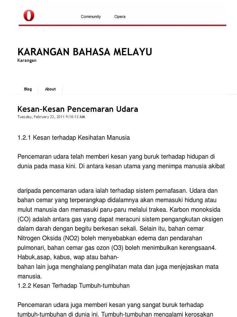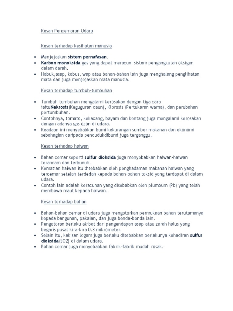 Contoh Karangan Kesan Pencemaran Udara Tugasan Geo Ting 3 Pdf